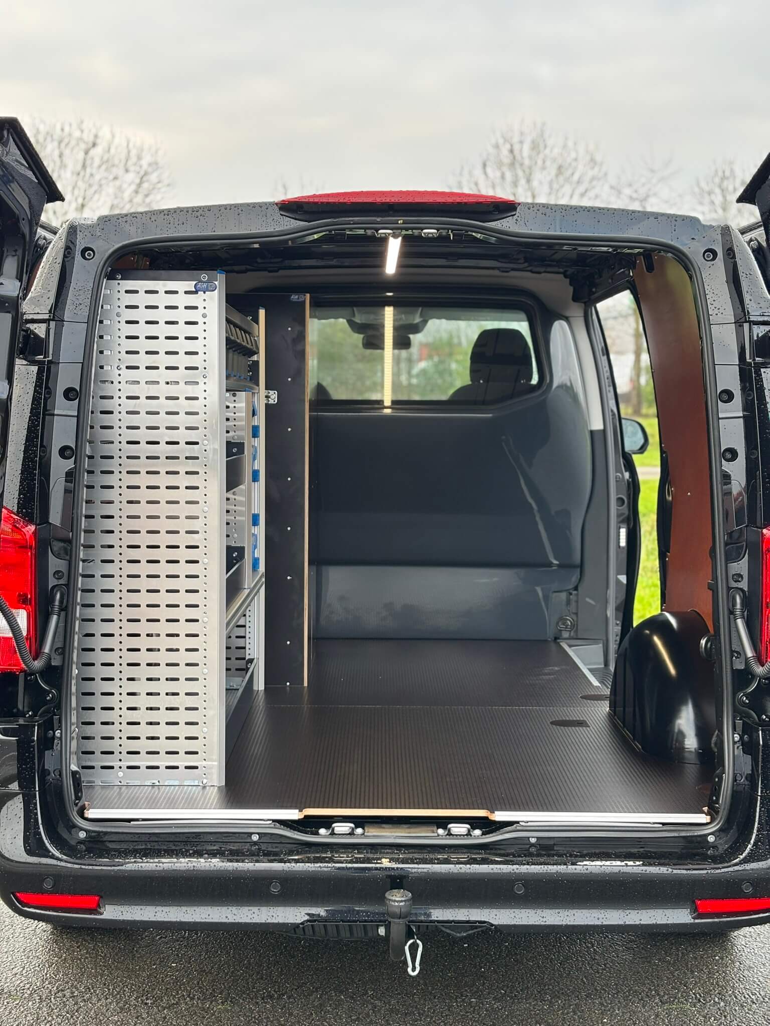 Deze Mercedes-Benz Vito is ingericht voor maximale functionaliteit. Alles is ontworpen rondom de manier van werken van de specialisten van Conpro: overzichtelijk, stevig en betrouwbaar. Zo kunnen zij zich blijven richten op waar ze goed in zijn — het technisch reinigen en verduurzamen van installaties.