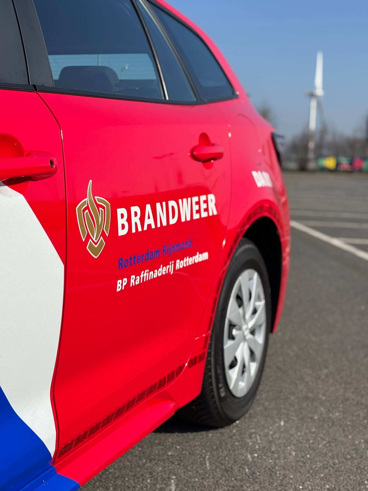 Binnen industriële omgevingen zoals de BP Raffinaderij in Rotterdam is het belangrijk dat voertuigen snel, veilig én goed zichtbaar inzetbaar zijn. Deze Toyota Corolla is daarom omgebouwd tot een compact brandweerauto, uitgerust met een passend signaleringssysteem voor gebruik op en rond het terrein.