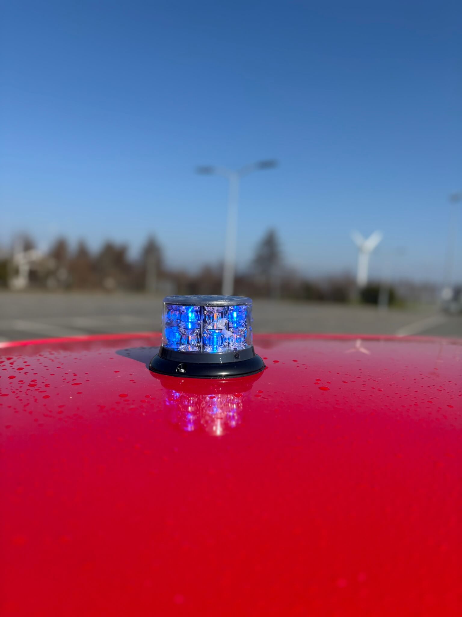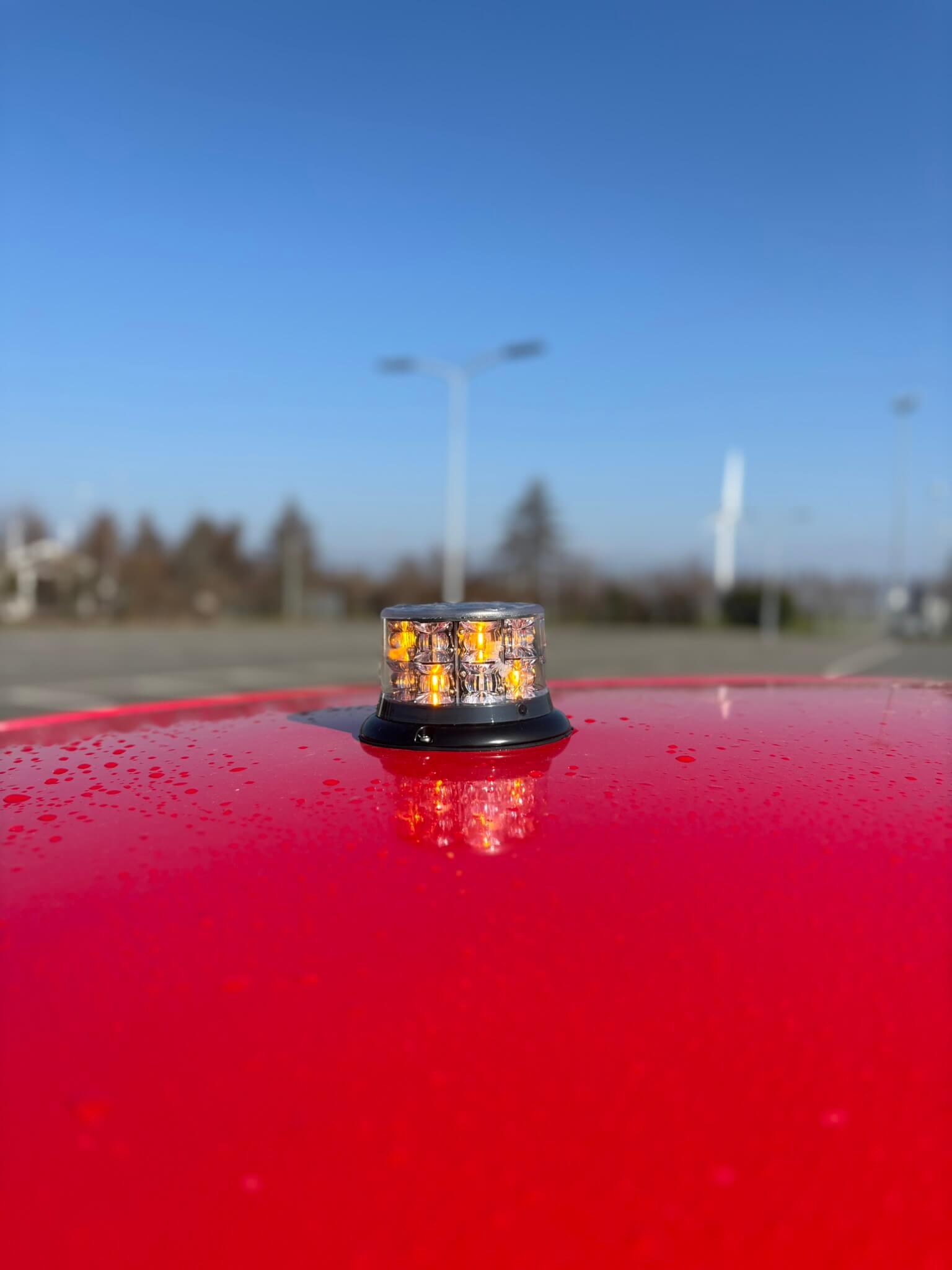 Op het dak is een vaste beacon gemonteerd, zo gepositioneerd voor maximale zichtbaarheid. Deze beacon bevat zowel blauwe als oranje signalering, waardoor de auto flexibel inzetbaar is in verschillende situaties: van hulpverlening tot terreinbegeleiding. De claxon is bovendien gekoppeld aan een versneller, voor extra attentiewaarde bij noodgevallen.