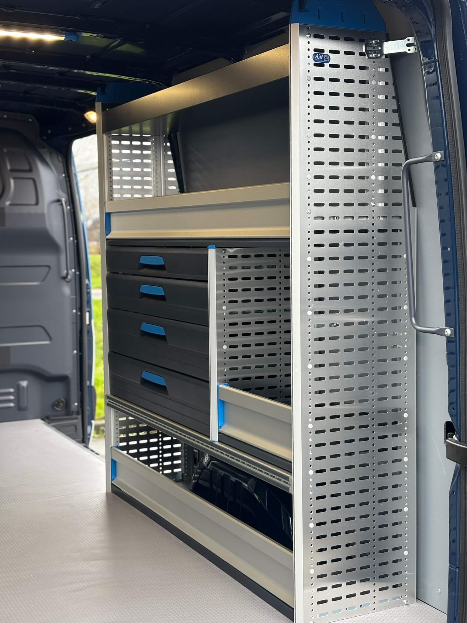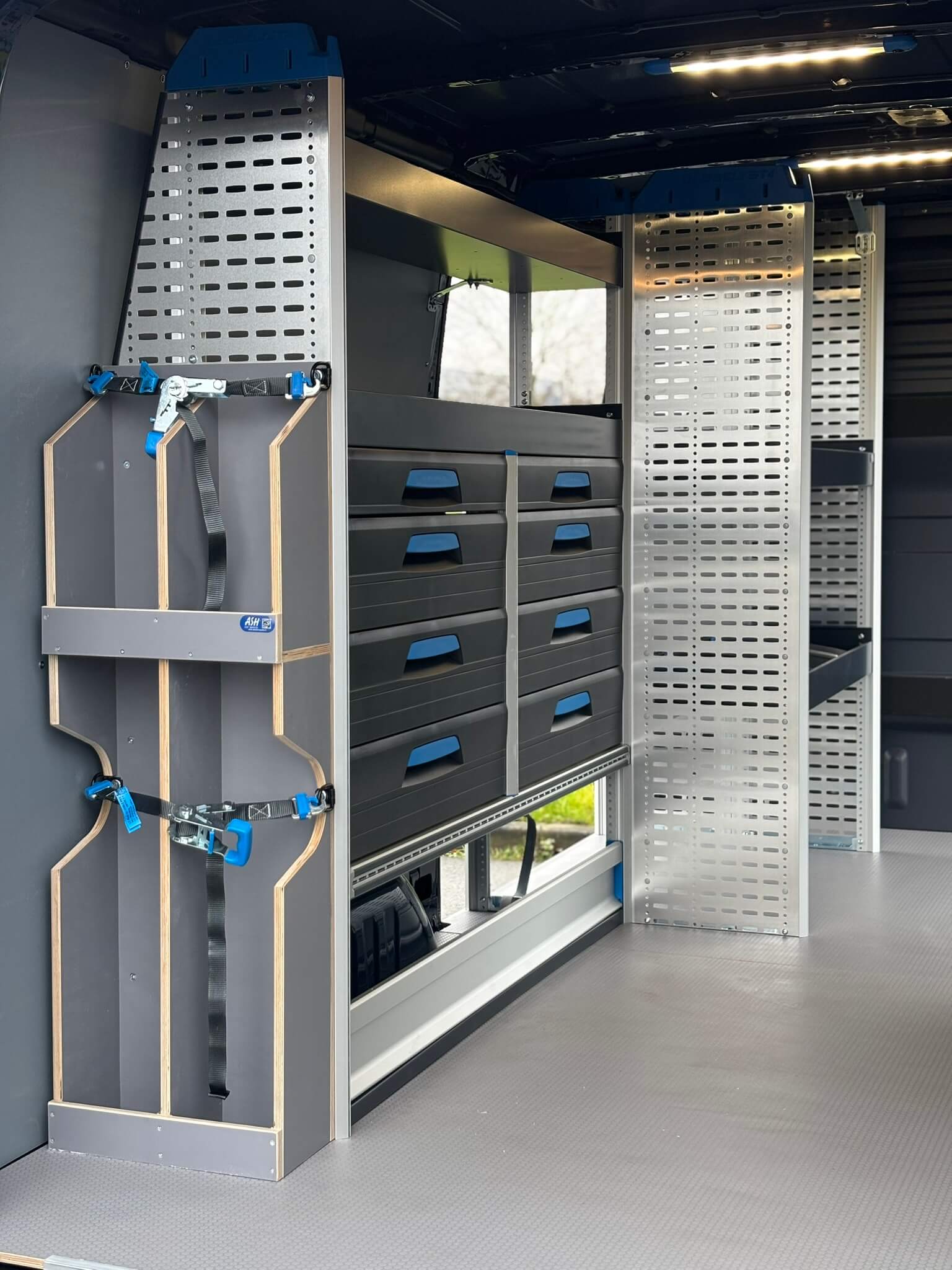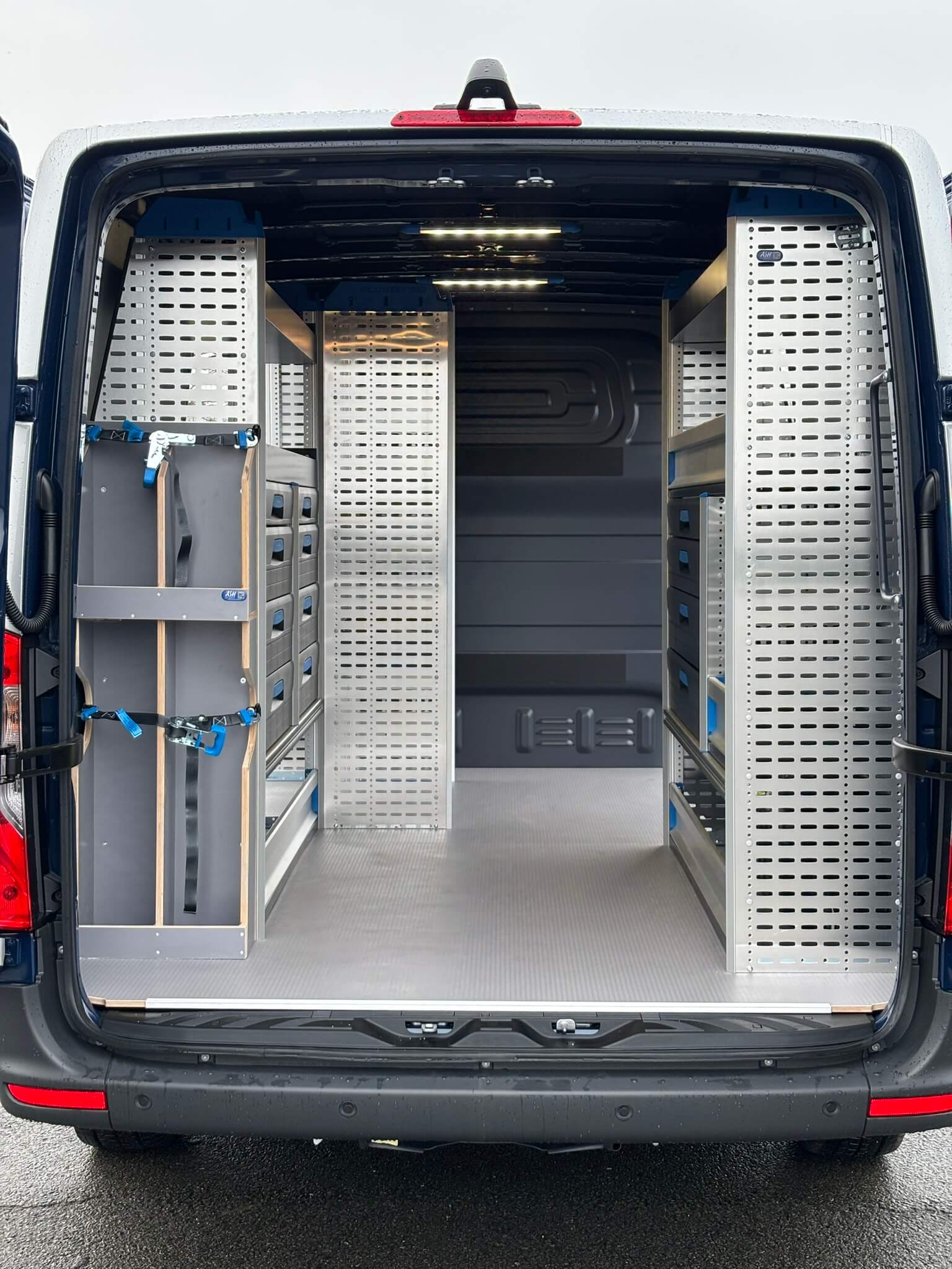 Voor Maha Explora, specialist in werkplaatsinrichting zoals hefbruggen, remmentestbanken en bandenmachines, realiseerden we de inrichting van een Mercedes-Benz Sprinter. Een praktische, overzichtelijke inrichting was hierbij essentieel, zodat hun monteurs op locatie efficiënt kunnen werken met alle benodigde onderdelen en gereedschappen direct binnen handbereik.